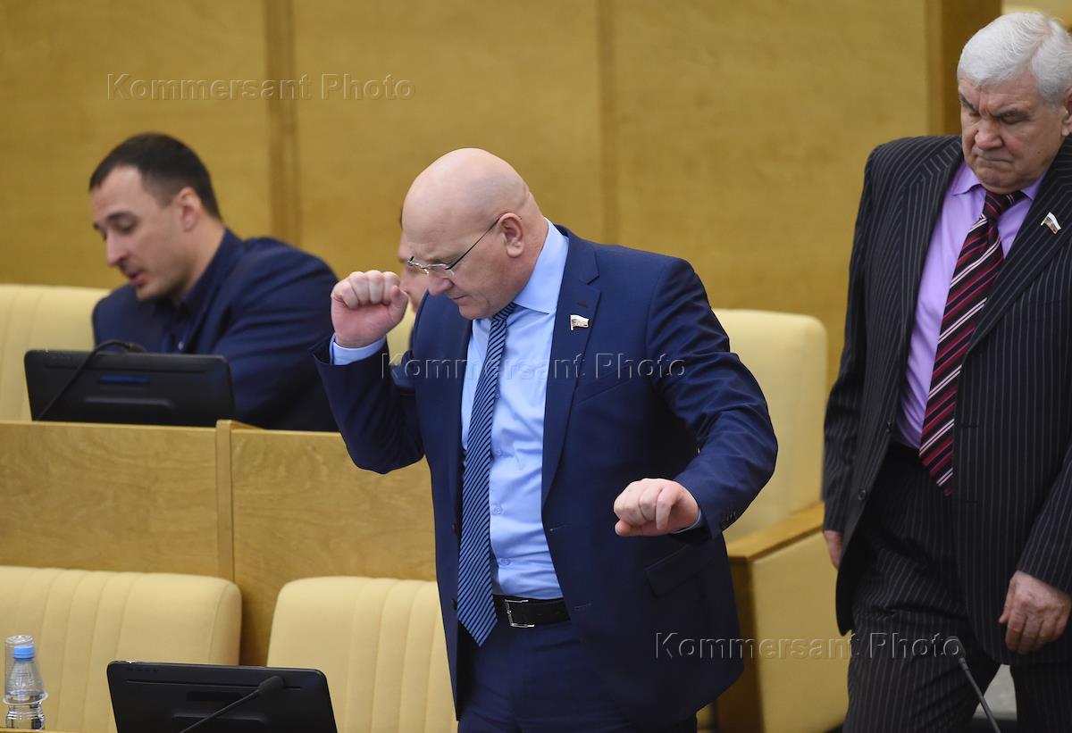 Пленарное заседание Государственной думы (ГД) России. Член комитета ГД России по природным ресурсам, собственности и земельным отношениям Константин Слыщенко во время заседания.