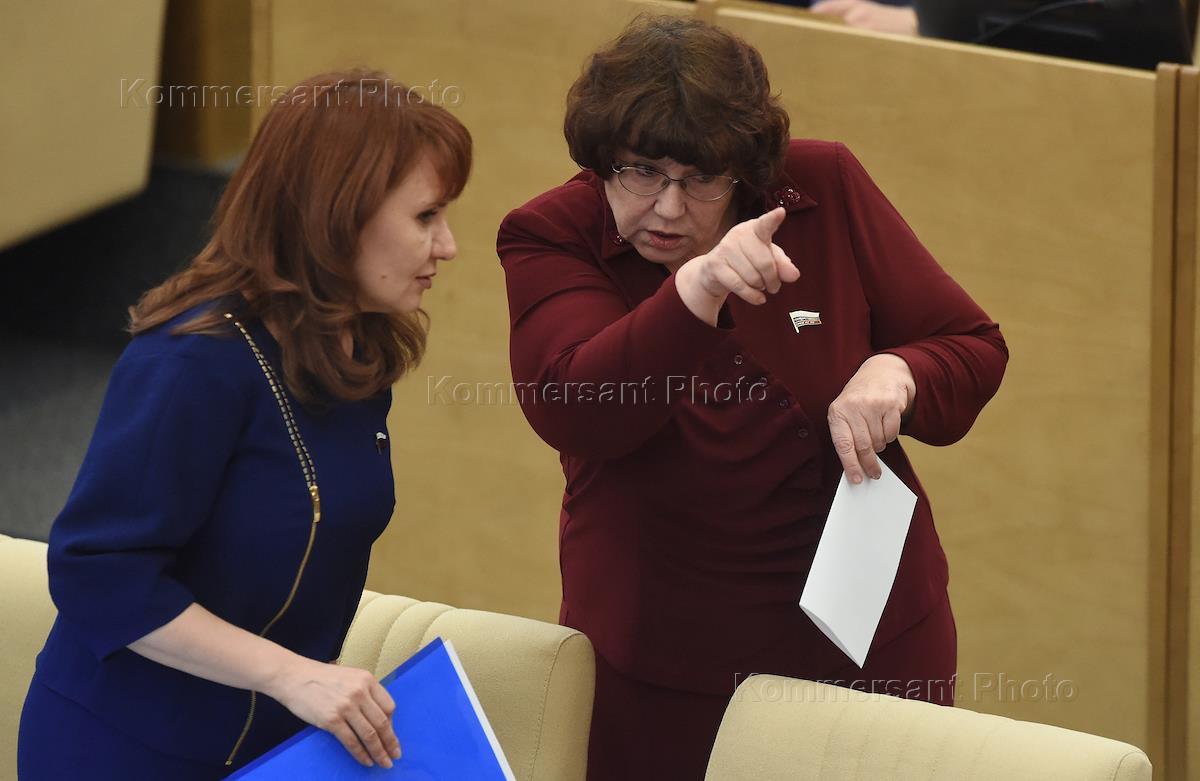 Пленарное заседание Государственной думы (ГД) России. Член комитета ГД России по труду, социальной политике и делам ветеранов Ольга Павлова (слева) во время заседания.