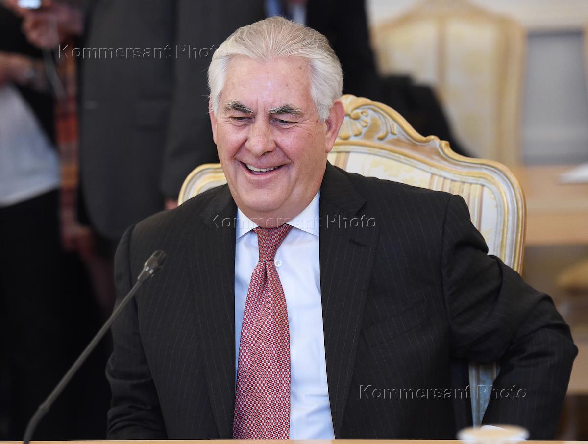 Встреча Министра иностранных дел России Сергея Лаврова с государственным секретарем США Рексом Тиллерсоном прошла в Доме приемов МИД России. Министр иностранных дел России Сергей Лавров (в центре) и госсекретарь США Рекс Тиллерсон (справа) перед началом переговоров.