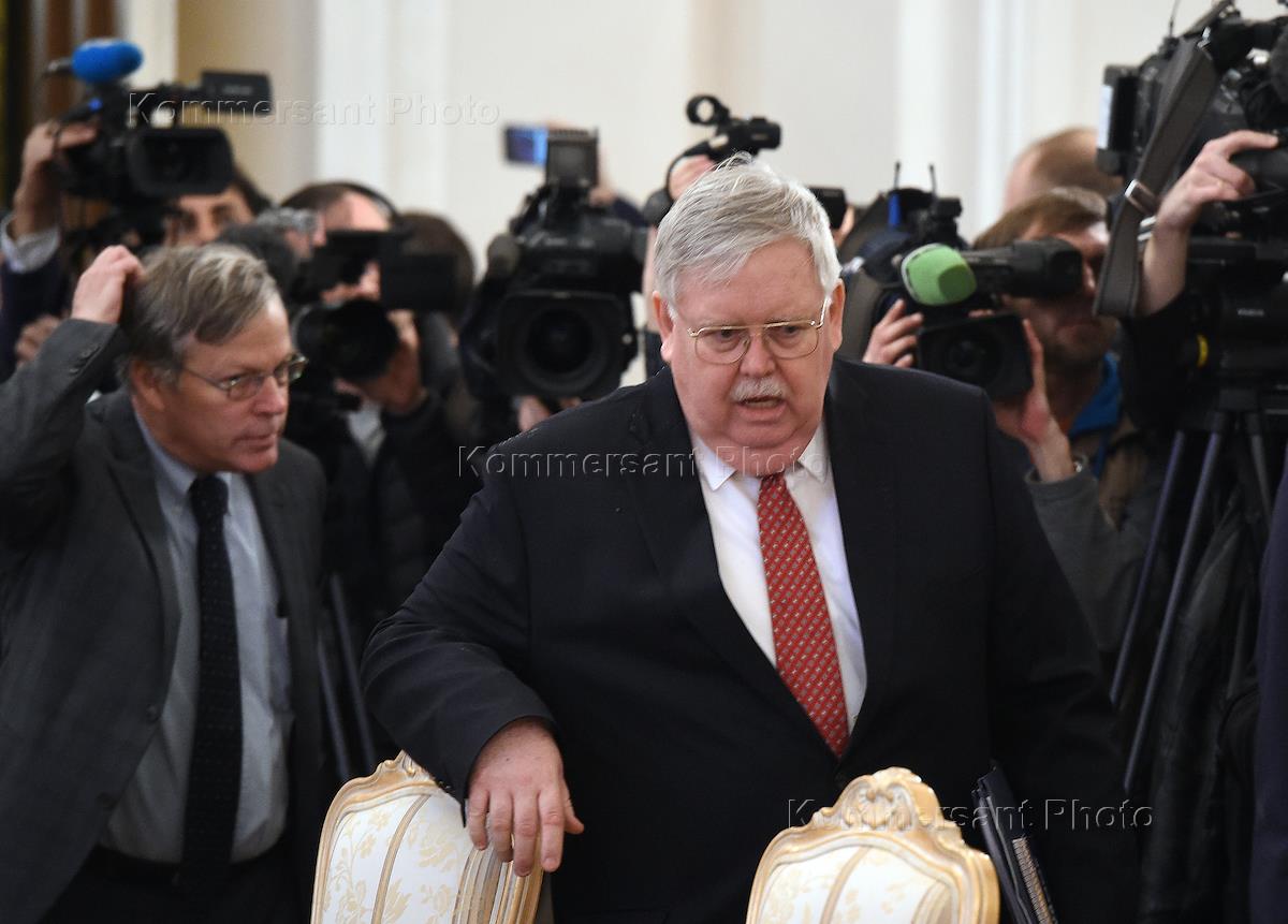 U.S. Ambassador to Russia John Tefft attends U.S. Secretary of State Rex Tillerson's talks with Russian Foreign Minister Sergey Lavrov.