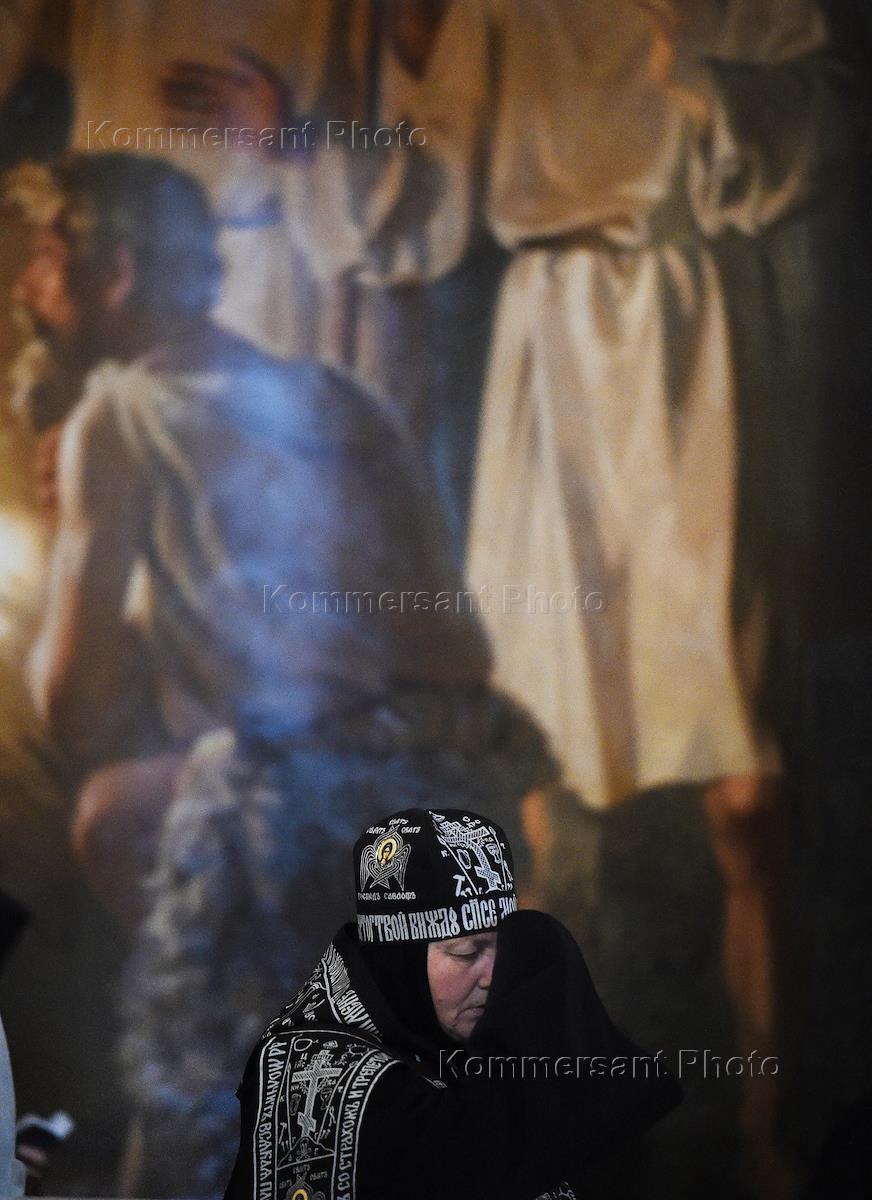 Монахиня во время богослужения в Великий четверг в храме Христа Спасителя.