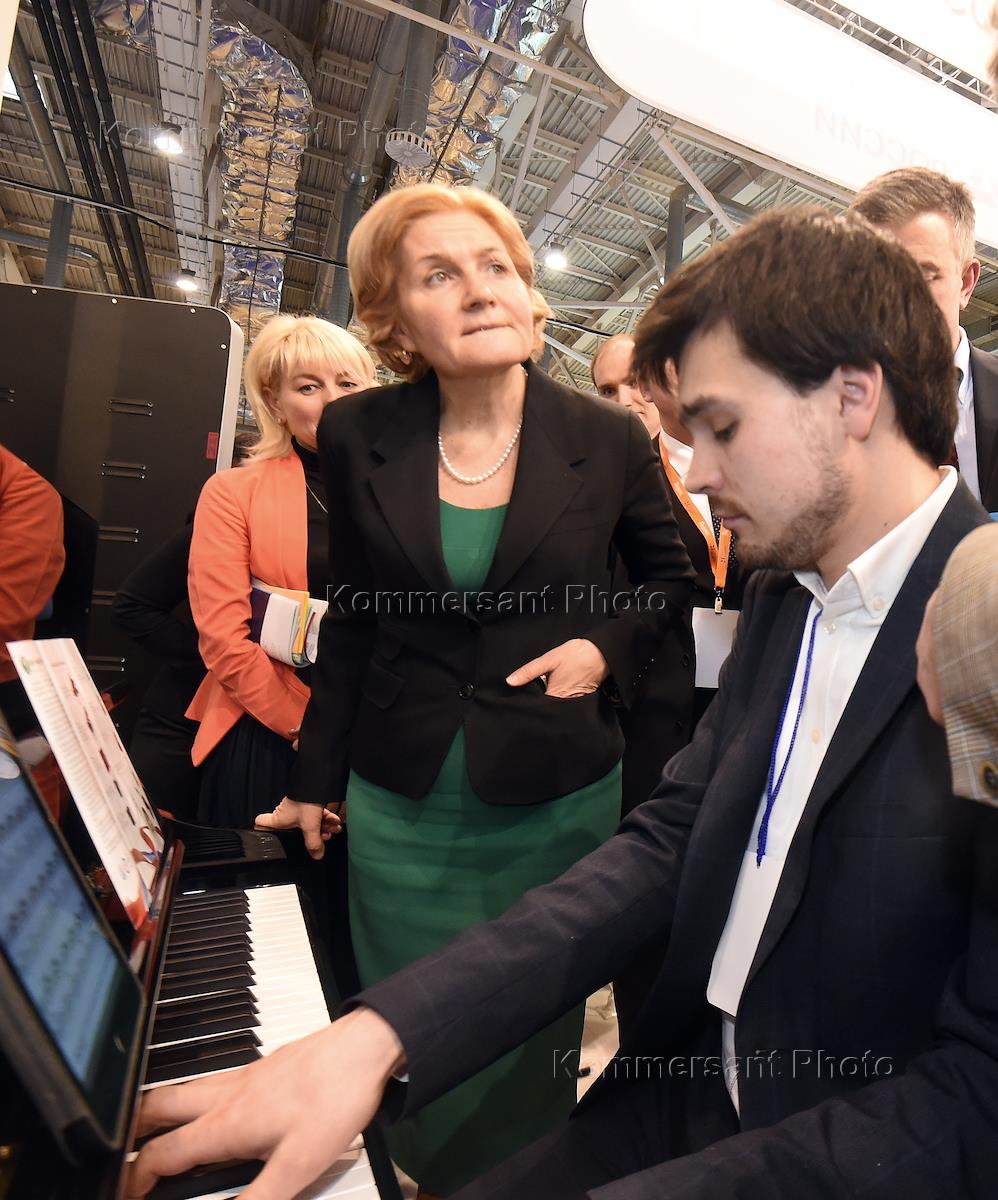 Московский международный салон образования 2017 прошел на ВДНХ. Заместителя председателя правительства России Ольга Голодец (справа) во время посещения салона.