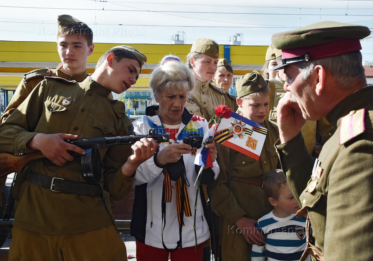 Праздничные мероприятия, посвященные 73-й годовщине освобождения Симферополя от немецко-фашистских захватчиков. Встреча на железнодорожном вокзале "Поезда Победы", маршрут которого проходит по городам Крыма.