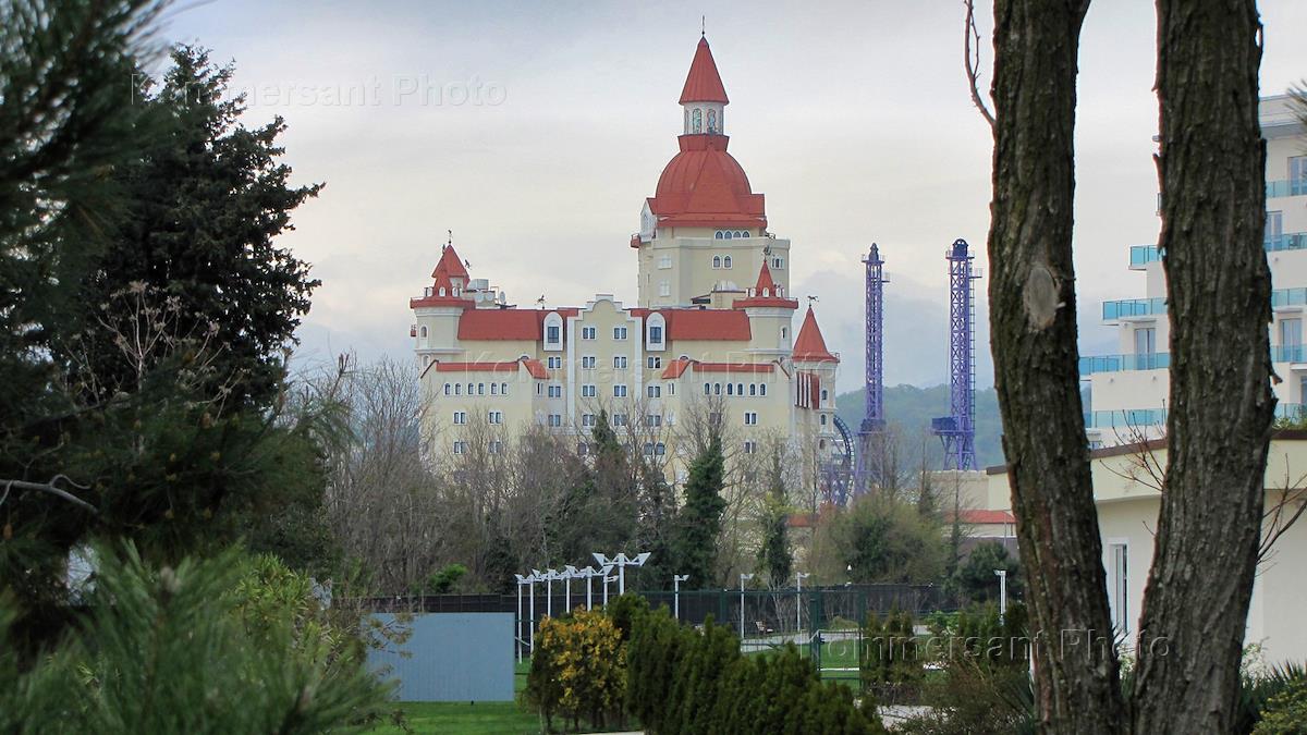Виды Сочи. Парк аттракционов "Сочи Парк" и отель "Богатырь".