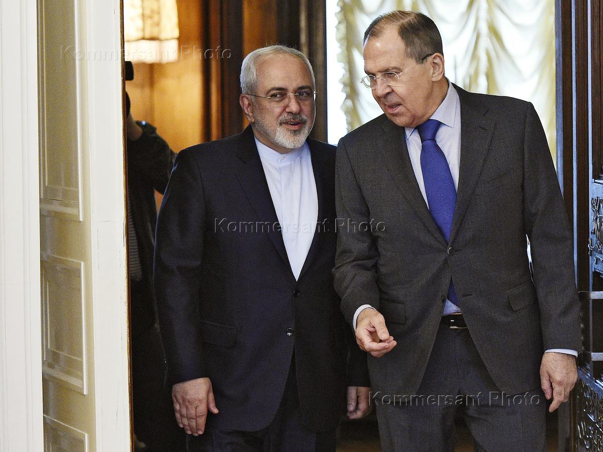 Министр иностранных дел Исламской Республики Иран Мохаммад Джавад Зариф (слева) и министр иностранных дел России Сергей Лавров (справа) во время встречи с в Доме приемов МИД России.