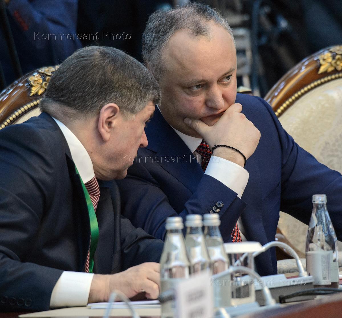 Moldovan President Igor Dodon (right) is seen during a Supreme Eurasian Economic Council (SEEC).