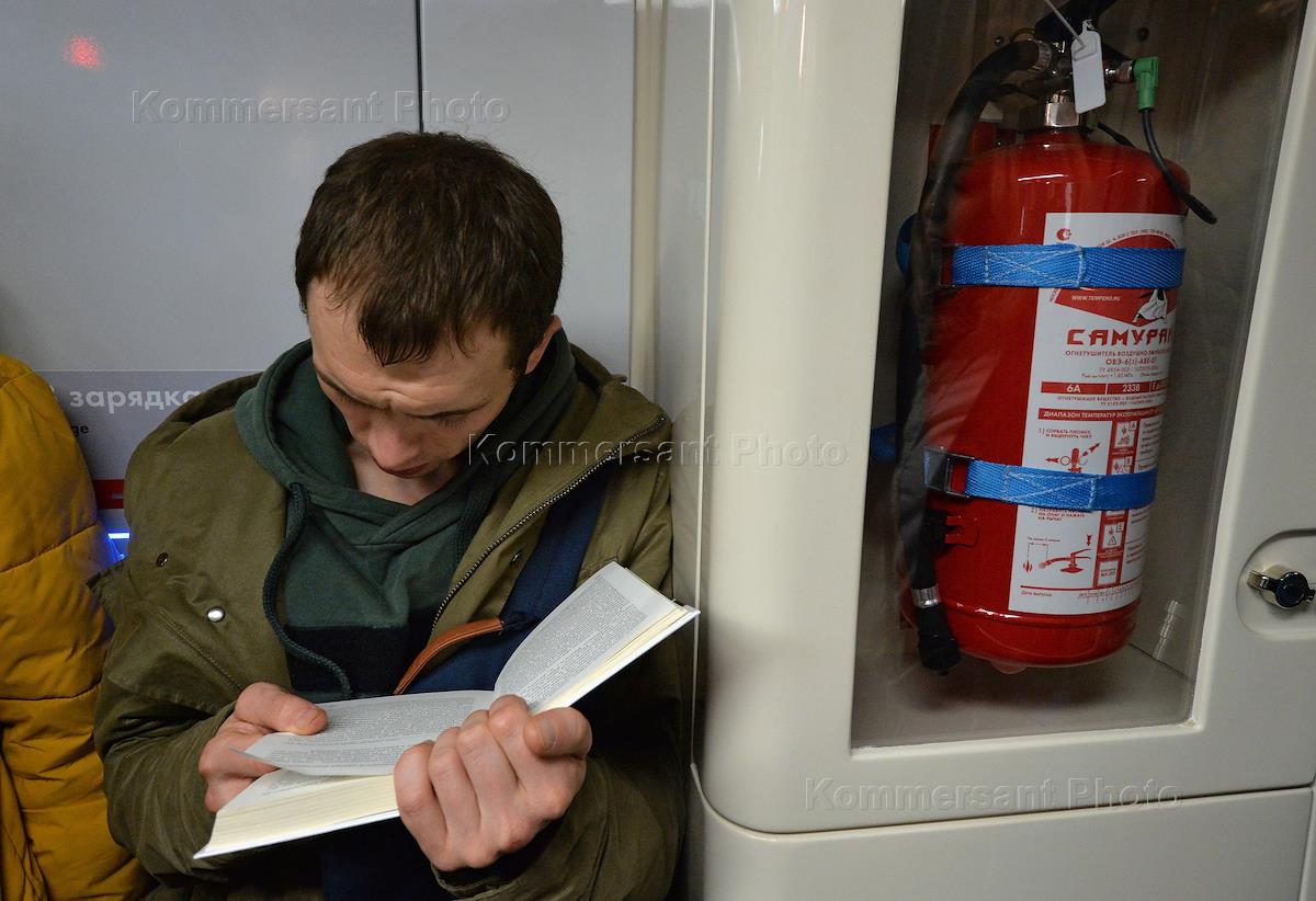 Passenger is seen during launching ceremony of new-generation Moskva trains at Moscow subway.