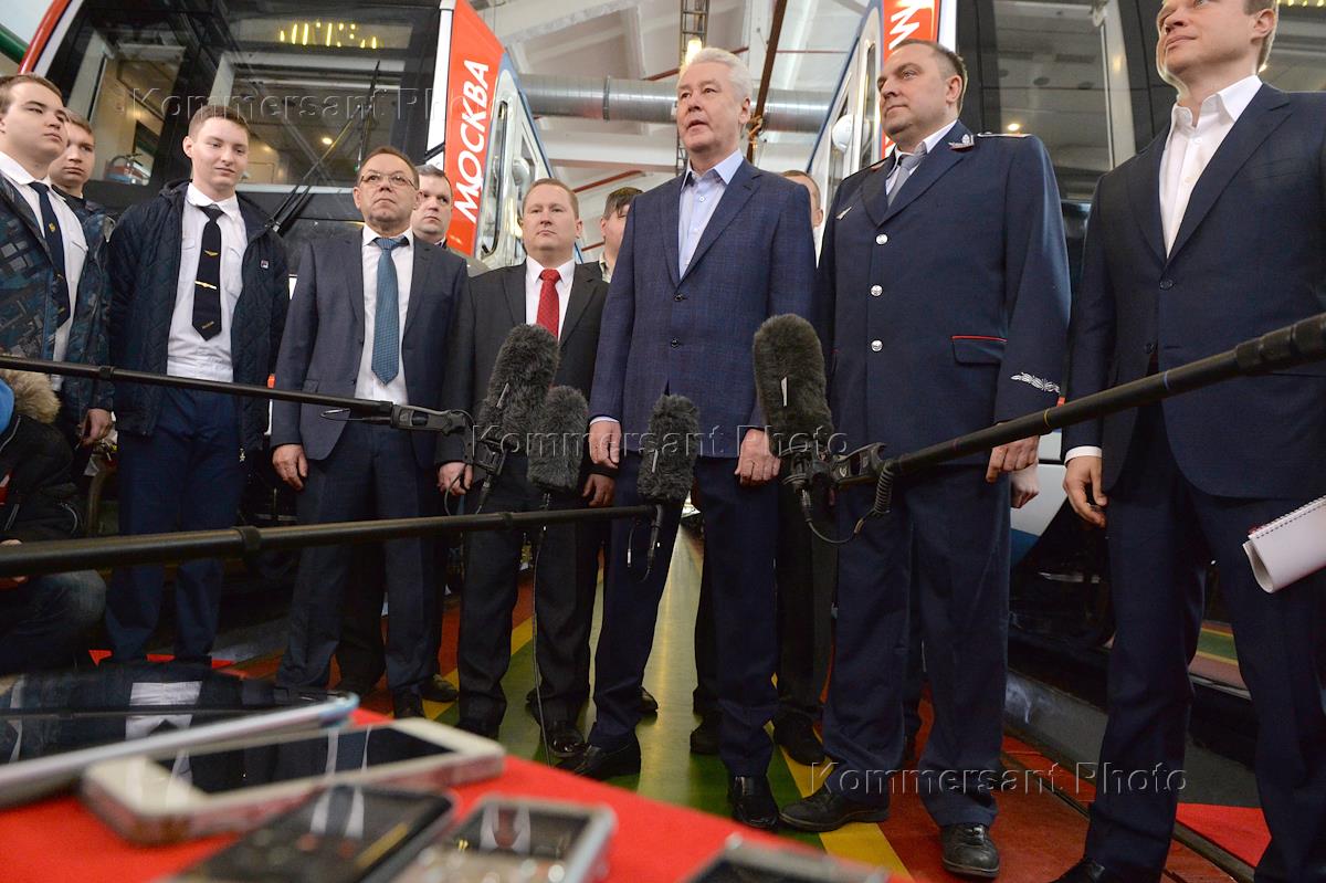 Moscow Mayor Sergei Sobyanin (centre) attends launching ceremony of new-generation Moskva trains at Moscow subway.