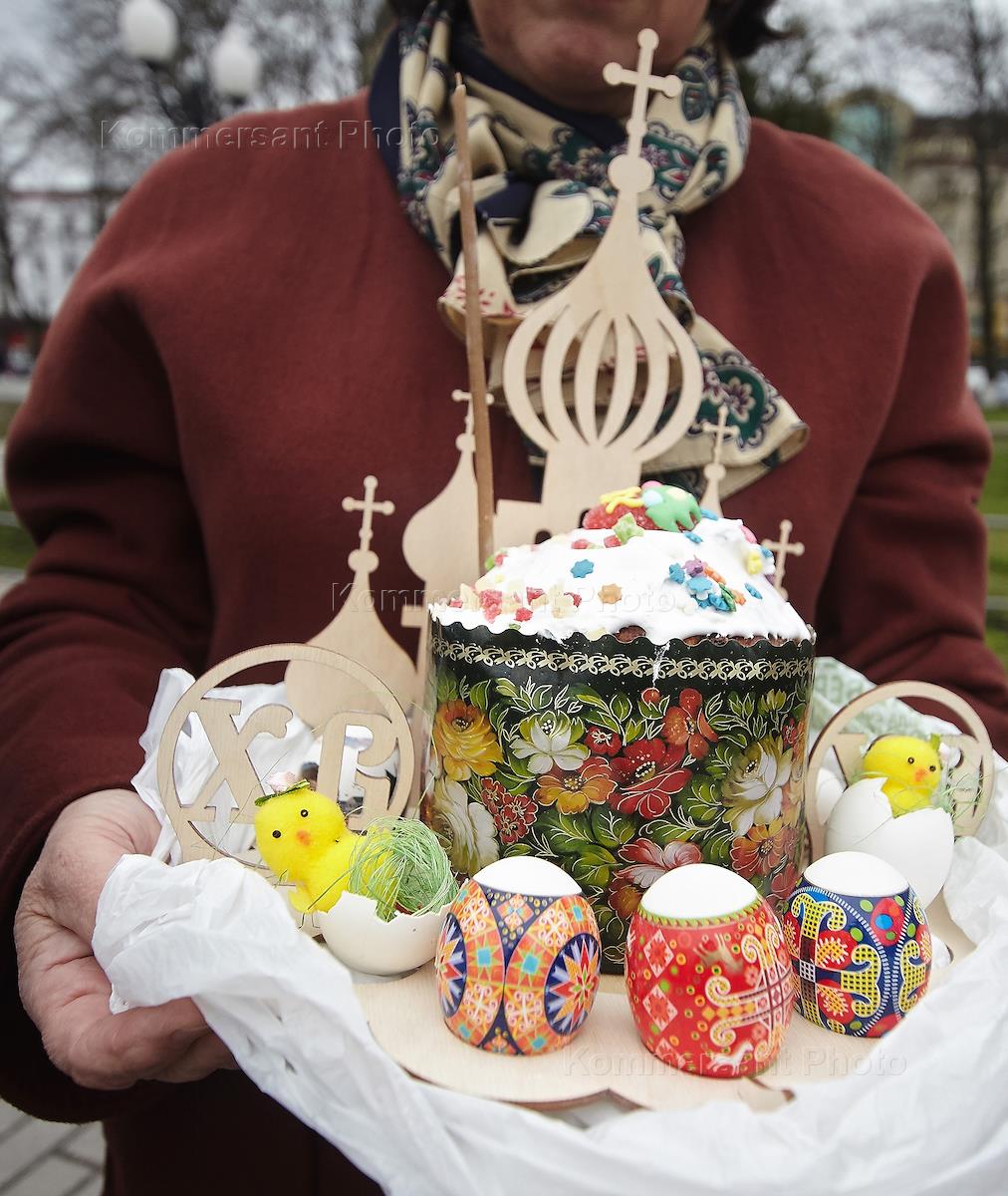 Освящение пасхальных куличей, яиц и пасхи в канун Светлого Христова Воскресения у кафедрального собора Христа Спасителя.