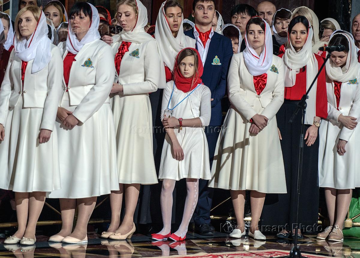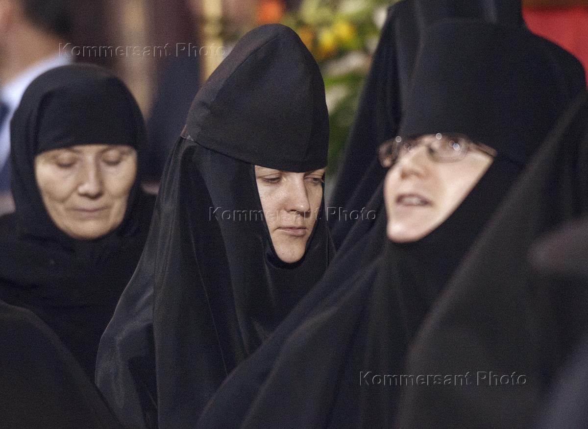 Пасхальная заутреня и Божественная литургия в кафедральном соборном Храме Христа Спасителя. Монахини во время пасхальной службы.