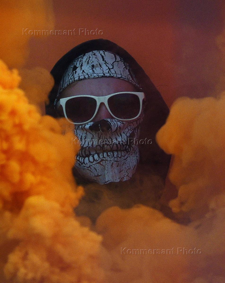 РОСГОССТРАХ Чемпионат России по футболу 2016/2017. 23-й тур. Матч между командами "Спартак" (Москва) - "Зенит" (Санкт-Петербург) прошел на стадионе "Открытие Арена". Болельщик команды "Спартак" на трибуне во время матча.