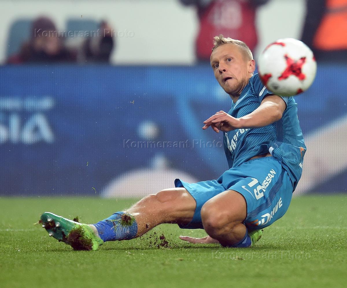 РОСГОССТРАХ Чемпионат России по футболу 2016/2017. 23-й тур. Матч между командами "Спартак" (Москва) - "Зенит" (Санкт-Петербург) прошел на стадионе "Открытие Арена". Игрок команды "Зенит" Игорь Смольников во время матча.