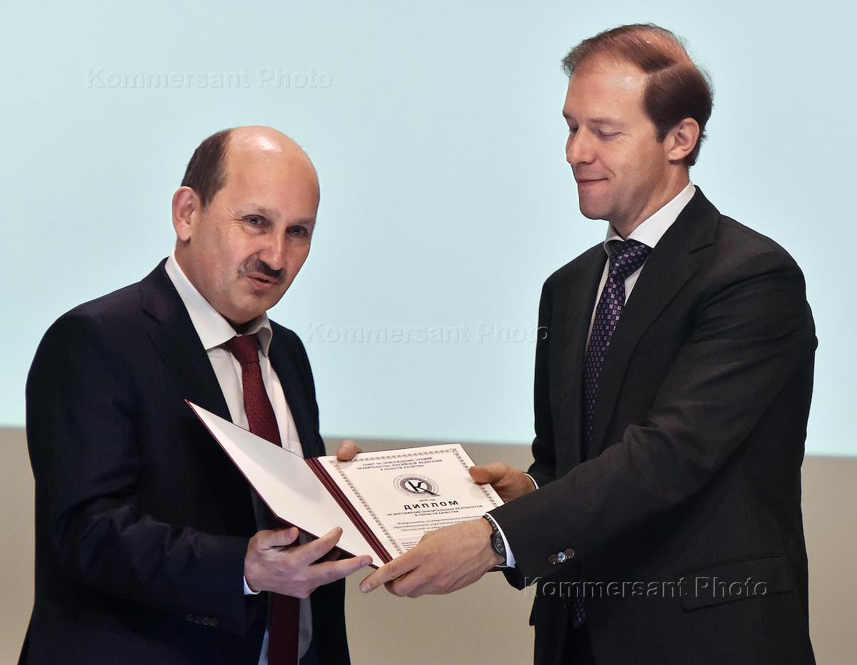 Заседание итоговой коллегии Федерального агентства по техническому регулированию и метрологии (Росстандарт). Министр промышленности и торговли России Денис Мантуров (справа) и ректор ФГБОУ ВПО МГТУ "СТАНКИН" Сергей Григорьев (слева) во время заседания.