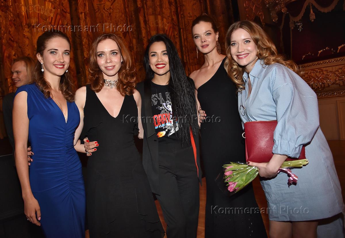 Премьера фильма режиссера Валерия Тодоровского "Большой" прошла в Государственном академическом Большом театре (ГАБТ). Слева направо: актрисы Анастасия Федорова, Маргарита Симонова, Азиза Кондыбаева, Анна Исаева и Анастасия Прокофьева на премьере.