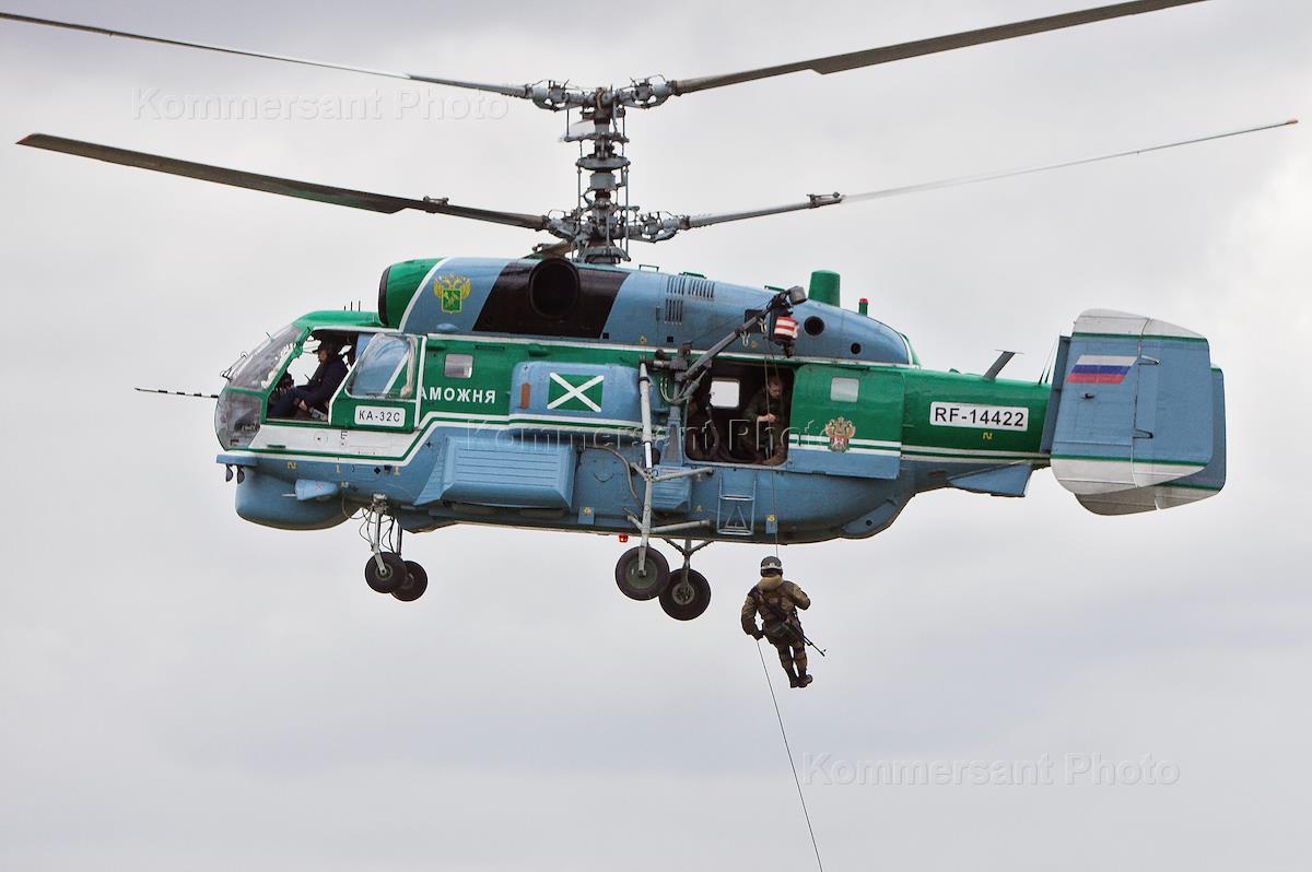 Всероссийский чемпионат специалистов-кинологов подразделений Федеральной таможенной службы (ФТС) России непосредственного подчинения ФТС России. Показательные выступления СОБРа Калининградской таможни. Высадка с вертолета.