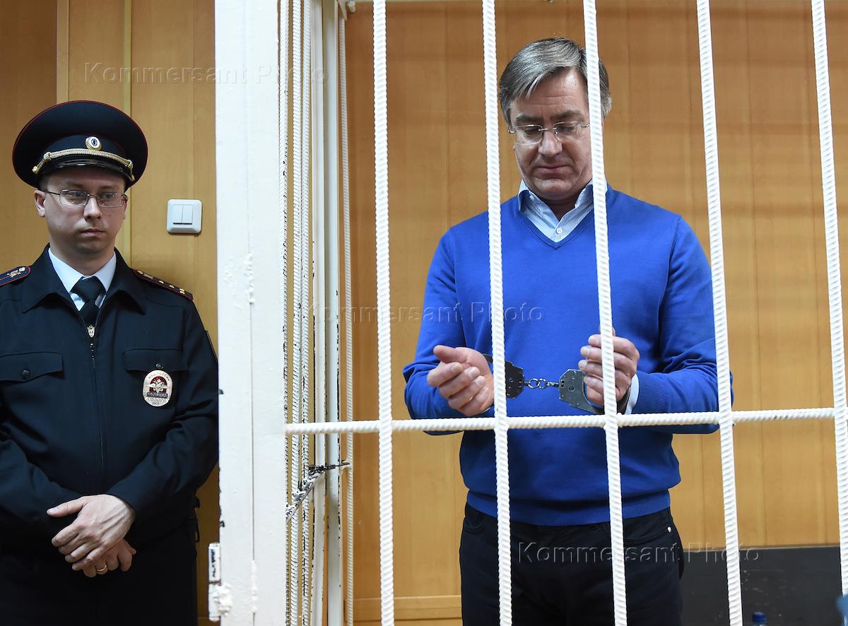 Бывший заместитель руководителя Федерального агентства России по туризму, бывший глава компании "ОПК Девелопмент" Дмитрий Амунц (слева), обвиняемый по делу о хищении денежных средств у Межпромбанка во время заседания Тверского районного суда.