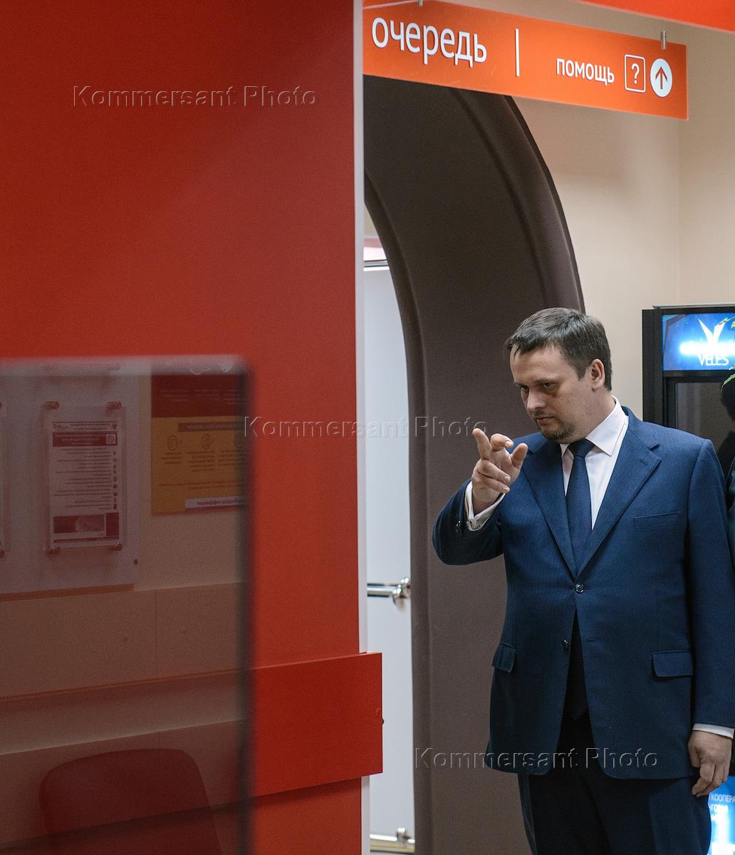 Рабочая поездка президента Росси Владимира Путина в Великий Новгород. Министр финансов России Антон Силуанов во время посещения городского многофункционального центра предоставления государственных и муниципальных услуг (МФЦ).