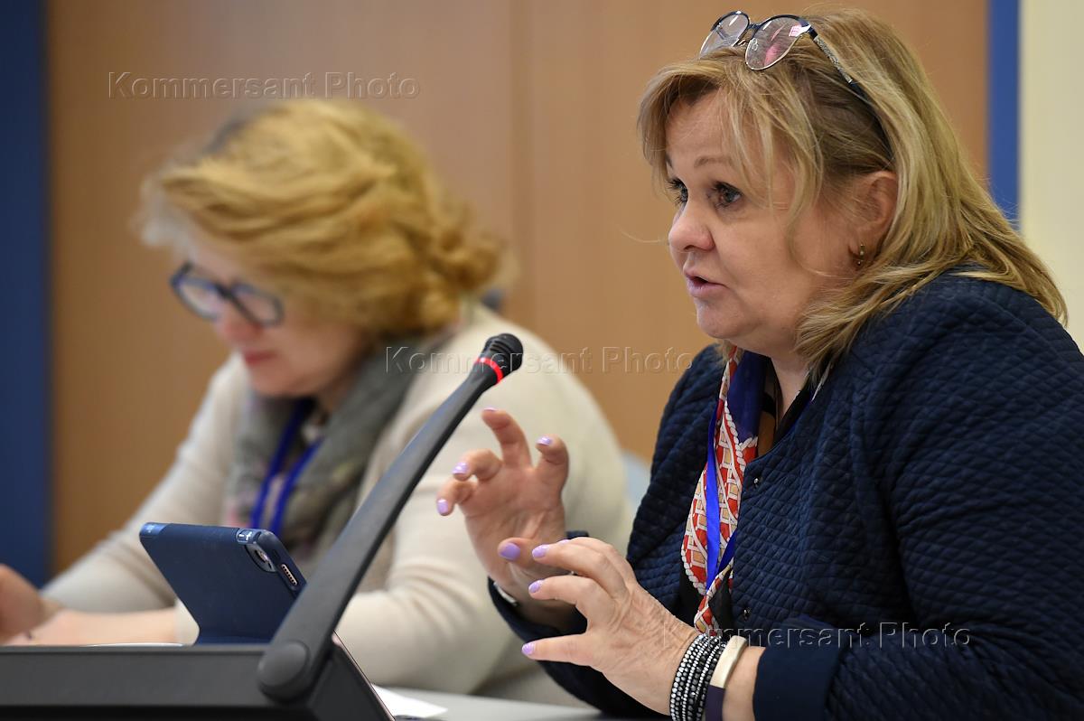 Круглый стол на тему "Домашнее насилие" в представительстве Европейской комиссии в России. Заместитель председателя правления межрегиональной общественной организации "Врачи детям" (Санкт-Петербург) Любовь Смыкало во время заседания.