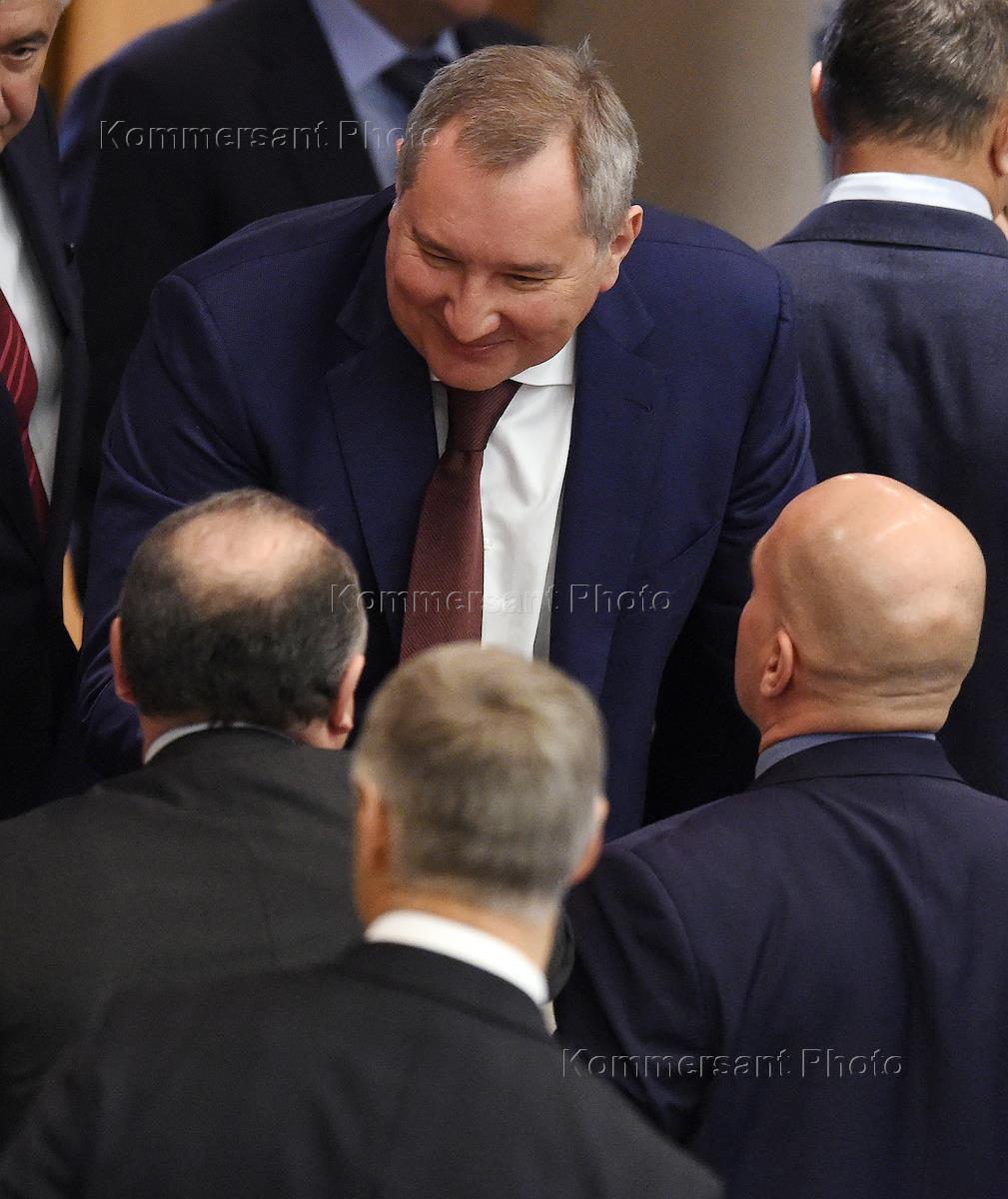 Пленарное заседание Государственной думы России с участием председателя правительства России Дмитрия Медведева. Заместитель председателя Правительства России Дмитрий Рогозин (в центре) во время заседания.