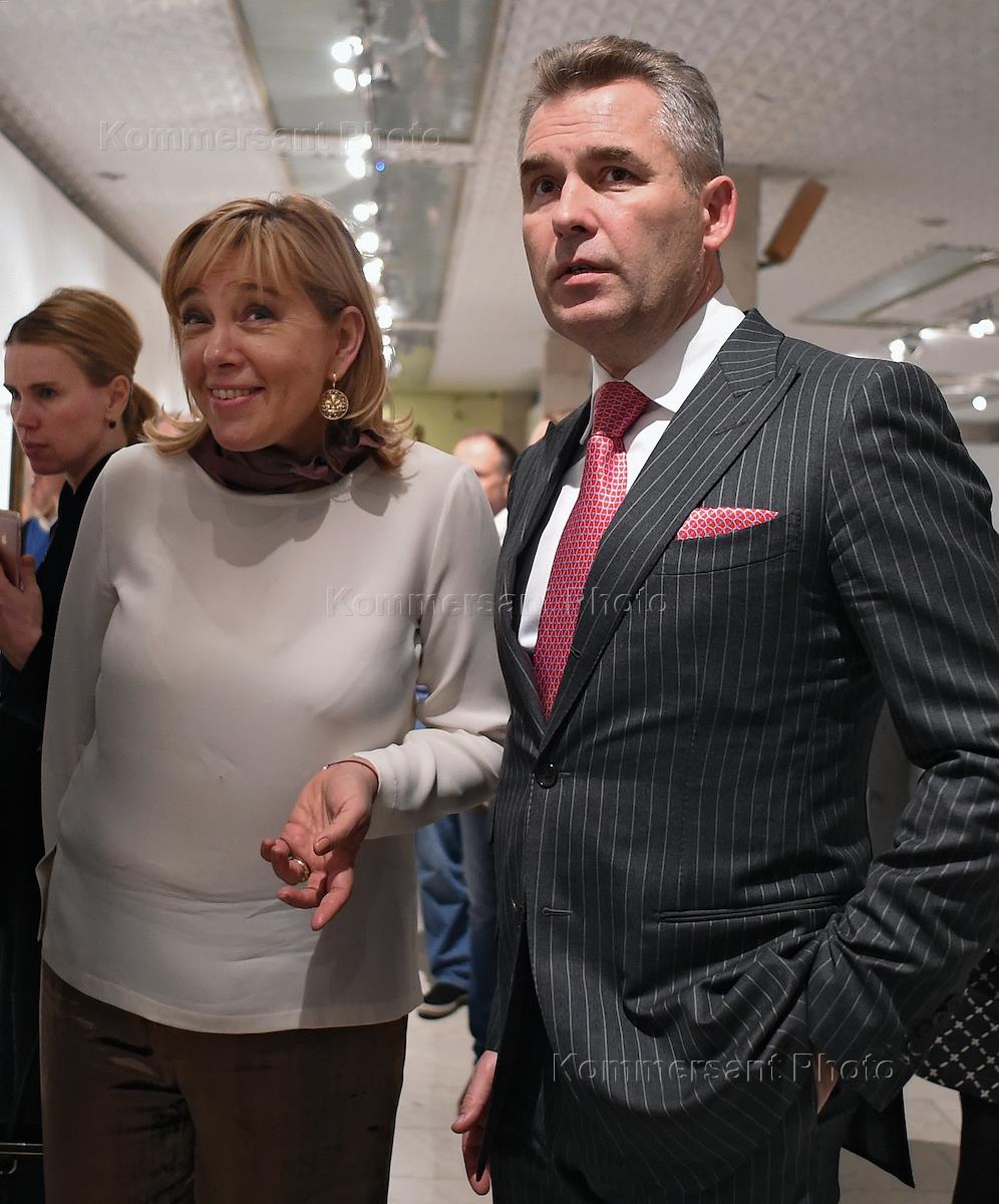 XVII открытый фестиваль искусств "Черешневый лес". Церемония открытия выставки "Джорджо де Кирико. Метафизические прозрения" в Государственной Третьяковской галерее. Телеведущая Арина Шарапова (слева) и адвокат Павел Астахов (справа) во время церемонии.