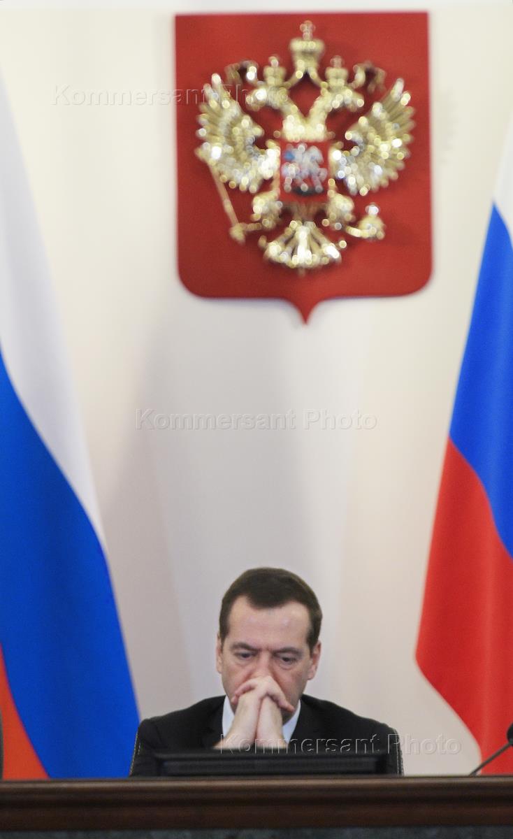Расширенное заседание коллегии Министерства финансов (Минфин), с участием председателя правительства России Дмитрия Медведева, в здании Минфина России.