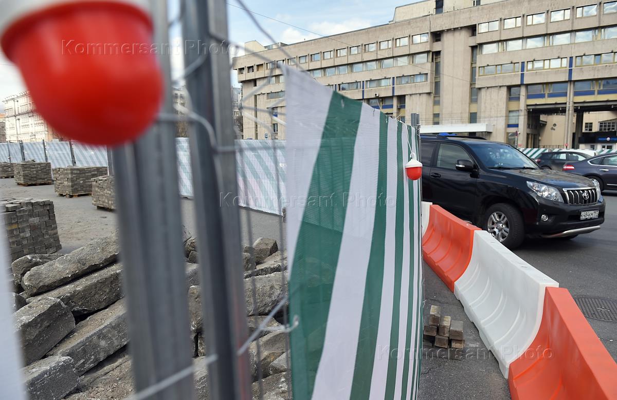Работу по ремонту и благоустройству Садового кольца. Замена асфальта на плитку на Зубовском бульваре.