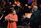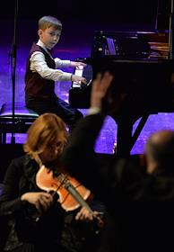 День открытых дверей "Алиса в стране чудес" Международной школы с углубленным изучением иностранных языков "Интеграция XXI век" прошел в Московском международном Доме музыки (ММДМ). Художественный руководитель камерного оркестра Cantus Firmus Александр Хургин (справа) во время выступления окрестра Дне открытых дверей.
