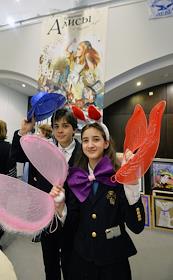 Праздник "День открытых дверей" "Алиса в стране чудес" Международной школы с углубленным изучением иностранных языков "Интеграция XXI век" в Московском международном Доме музыки (ММДМ). Выставка детских рисунков и поделок.