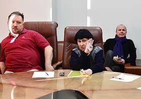 Редколлегия газеты "Коммерсантъ" в новом здании редакции на Рублевском шоссе. Руководитель группы выпуска Анна Афанасьева (в центре) на редколлегии.