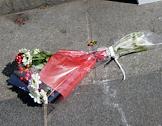 Цветы от жителей Парижа на месте нападение на полицейских на Елисейских Полях .
