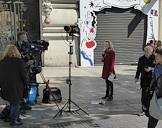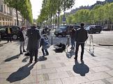 Сотрудники новостных СМИ Франции на месте нападение на полицейских на Елисейских Полях.