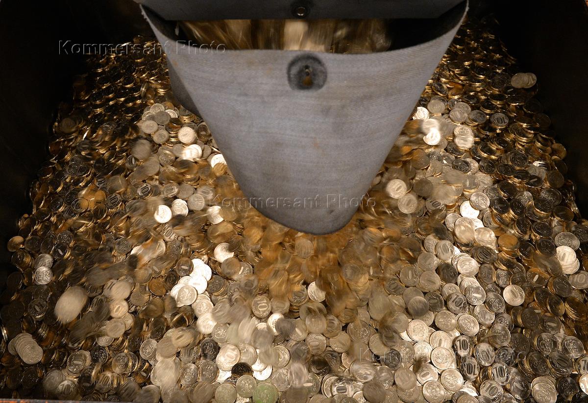 Московский монетный двор. Контейнеры с десятирублевыми монетами