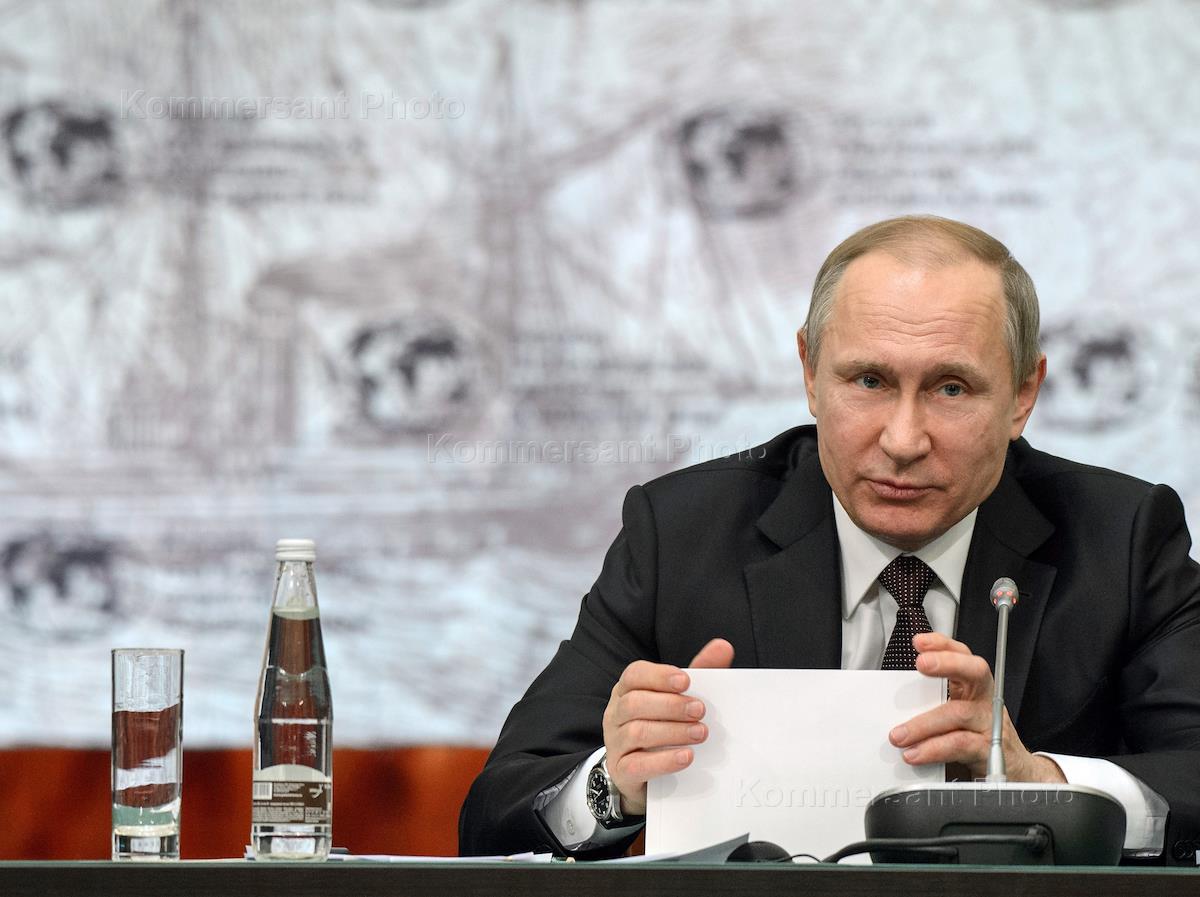 Рабочая поездка президента России Владимира Путина в Санкт-Петербург. Президент России Владимир Путин на заседании попечительского совета Русского географического общества (РГО) в штаб-квартире РГО.