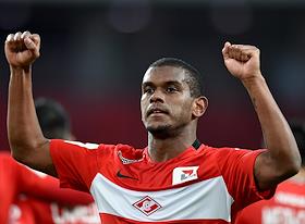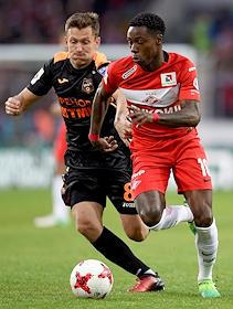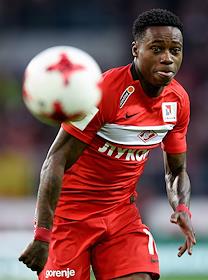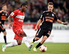 РОСГОССТРАХ Чемпионат России по футболу 2016/2017. 25-й тур. Матч между командами "Спартак" (Москва) - "Урал" (Екатеринбург) прошел на стадионе "Открытие Арена". Игрок команды "Спартак" Квинси Промес во время матча.