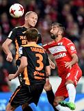 РОСГОССТРАХ Чемпионат России по футболу 2016/2017. 25-й тур. Матч между командами "Спартак" (Москва) - "Урал" (Екатеринбург) прошел на стадионе "Открытие Арена". Игрок команды "Спартак" Дмитрий Комбаров (справа) и игрок команды "Урал" Николай Димитров (слева) во время матча.