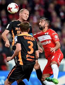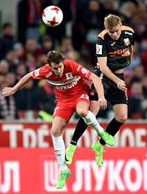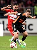 РОСГОССТРАХ Чемпионат России по футболу 2016/2017. 25-й тур. Матч между командами "Спартак" (Москва) - "Урал" (Екатеринбург) прошел на стадионе "Открытие Арена". Игрок команды "Спартак" Дмитрий Комбаров (слева) во время матча.