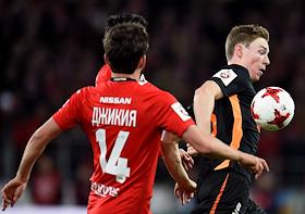 РОСГОССТРАХ Чемпионат России по футболу 2016/2017. 25-й тур. Матч между командами "Спартак" (Москва) - "Урал" (Екатеринбург) прошел на стадионе "Открытие Арена". Игрок команды "Спартак" Александр Самедов (справа) во время матча.
