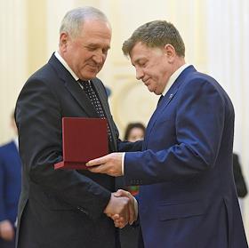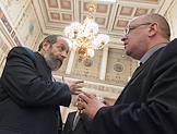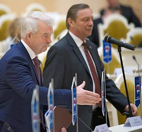 Заседание Законодательного собрания Санкт-Петербурга. Руководитель Федеральной таможенной службы России Владимир Булавин (слева) перед началом заседания.