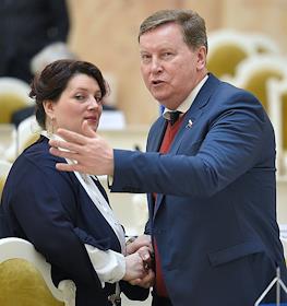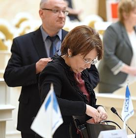 Заседание Законодательного собрания (заксобрания) Санкт-Петербурга. Депутат заксобрания Надежда Тихонова (слева) и член комитета ГД России по транспорту Олег Нилов (справа) во время заседания.