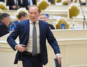 Заседание Законодательного собрания Санкт-Петербурга. Член правительства Санкт-Петербурга - председатель комитета по благоустройству Санкт-Петербурга Владимир Рублевский во время заседания.