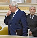 Заседание Законодательного собрания Санкт-Петербурга. Губернатор Санкт-Петербурга Георгий Полтавченко во время заседания.