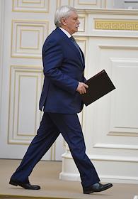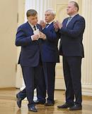 Заседание Законодательного собрания (заксобрания) Санкт-Петербурга. Слева направо: председатель заксобрания Вячеслав Макаров, губернатор Санкт-Петербурга Георгий Полтавченко и полномочный представитель президента России в Северо-западном федеральном округе во время заседания.