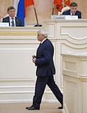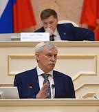 Заседание Законодательного собрания Санкт-Петербурга. Губернатор Санкт-Петербурга Георгий Полтавченко (в центре) во время заседания.