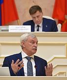 Заседание Законодательного собрания Санкт-Петербурга. Губернатор Санкт-Петербурга Георгий Полтавченко во время выступления на заседании.