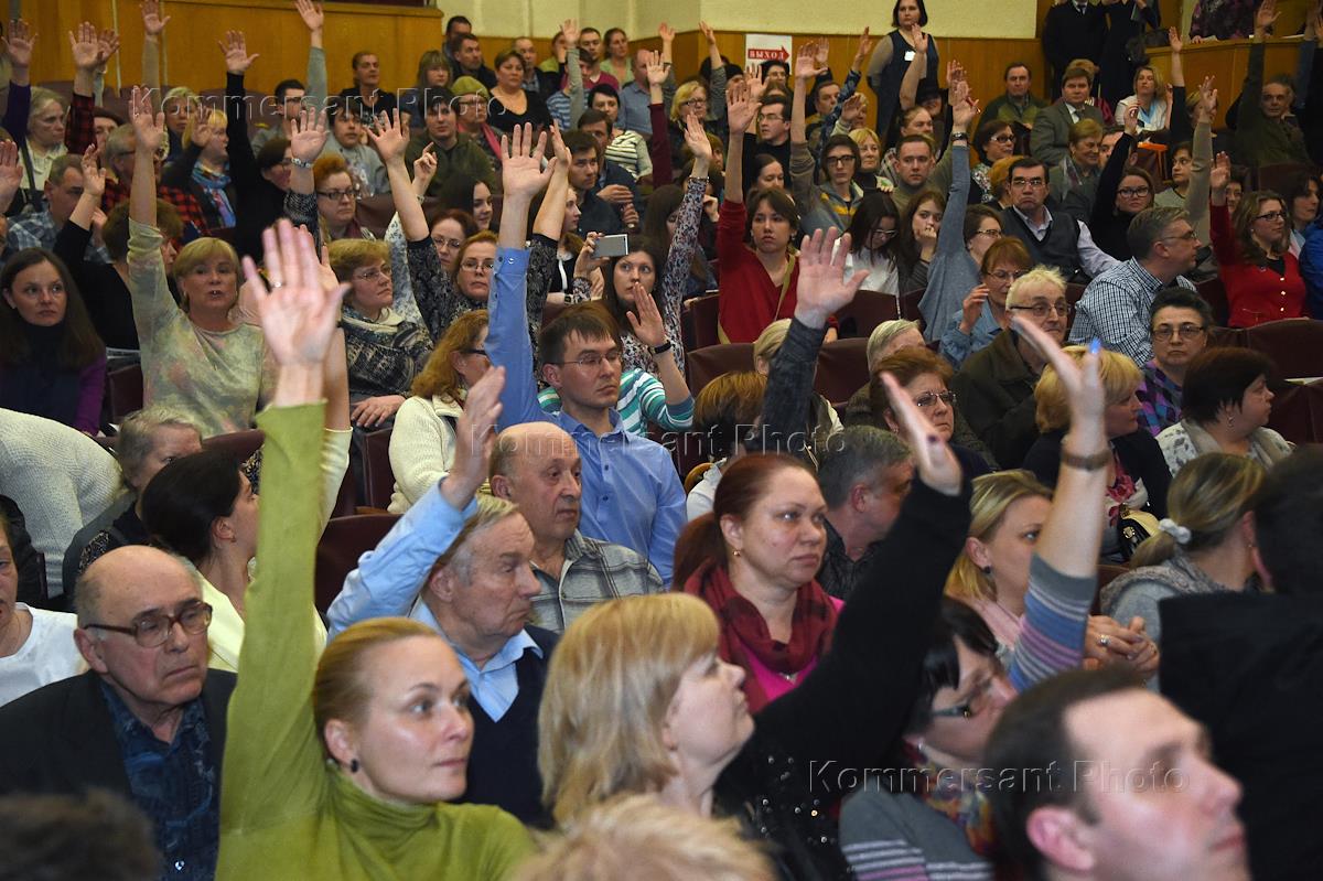 Жители Бутырского района во время встречи с префектом Северо-восточного административного округа Валерием Виноградовым.