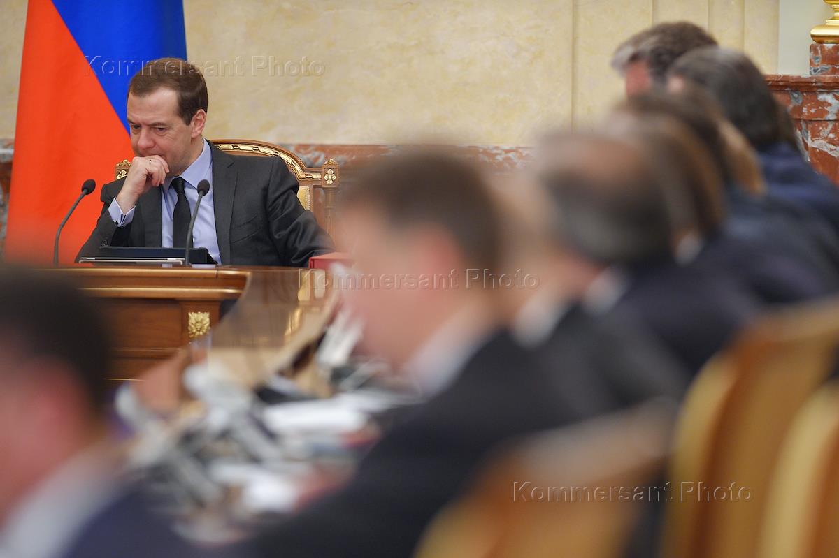Заседание правительства России. Председатель правительства России Дмитрий Медведев во время заседания.