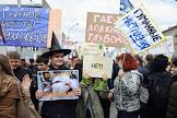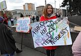 Участница первомайского молодежного шествия "Монстрация" с плакатом.