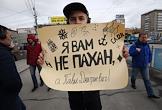 Человек с плакатом во время первомайского молодежного шествия "Монстрация" на улицах Новосибирска.