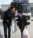 Первомайское молодежное шествие "Монстрация" на улицах Новосибирска. Сотрудник полиции разговаривает с участницей акции.