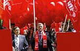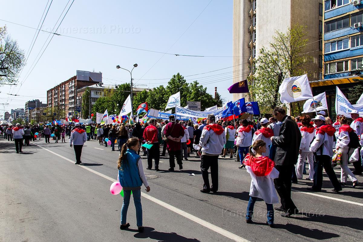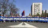 День международной солидарности трудящихся. Традиционное первомайское шествие разных партий и движений. Колонна Федерации независимых профсоюзов города.